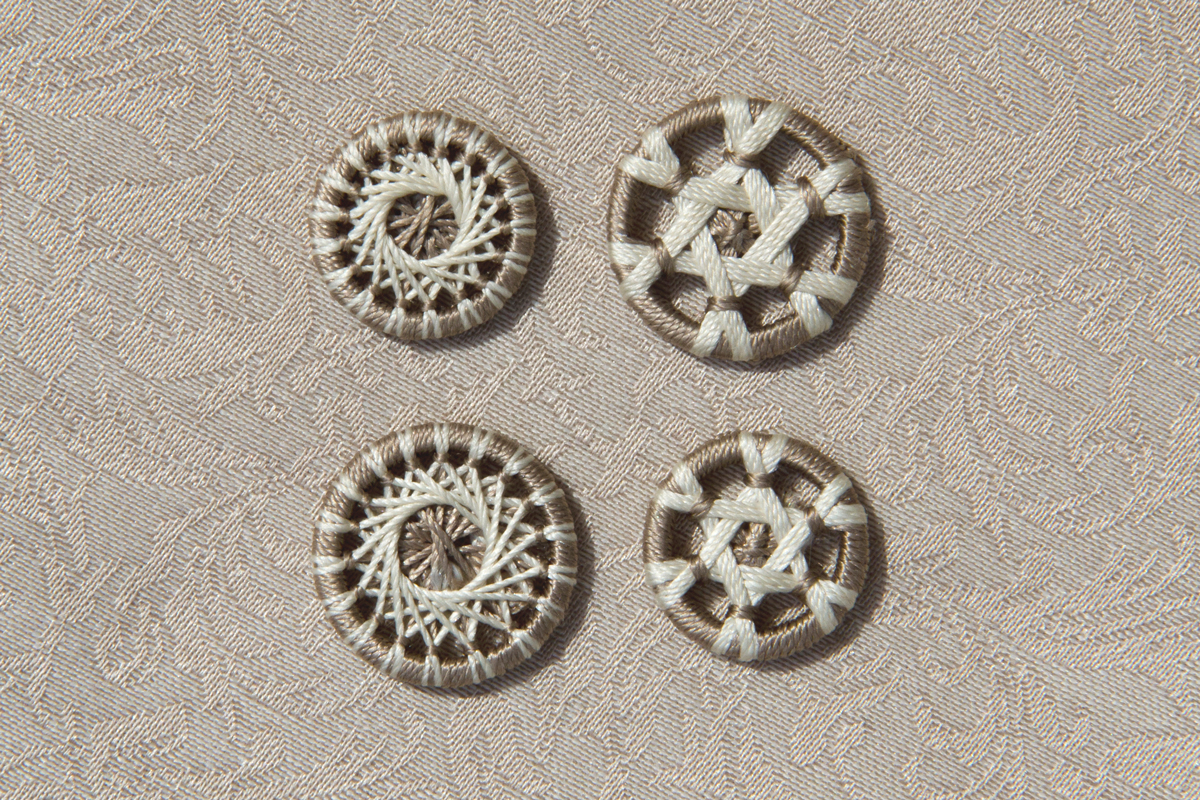 Zweifärbige Zwirnknopf-Modelle in den Größen 16, 18 und 21 aus Baumwollzwirn, z.B. für Blusen, Jacken und Mäntel