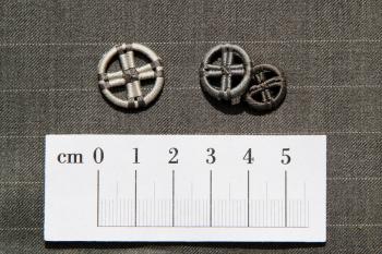 Zwirnknöpfe in weißer Seide in den Größen 10 und 13; passend z.B. zu einem eleganten Herrenhemd zu Frack und Smoking oder auf eine Damenbluse.