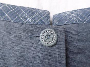 Die schönen Wäscheknöpfe auf diesem Hemd erinnern daran, dass das Hemd historisch zum Untergewand zählte, und auch heute ist ein kultivierter Herr nur im Hemd „nicht richtig angezogen“. Beim Kragen war die Büglerin schlampig.